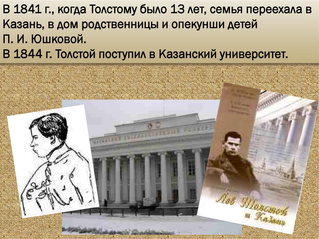 В 1844 г. Толстой поступил в Казанский университет.
