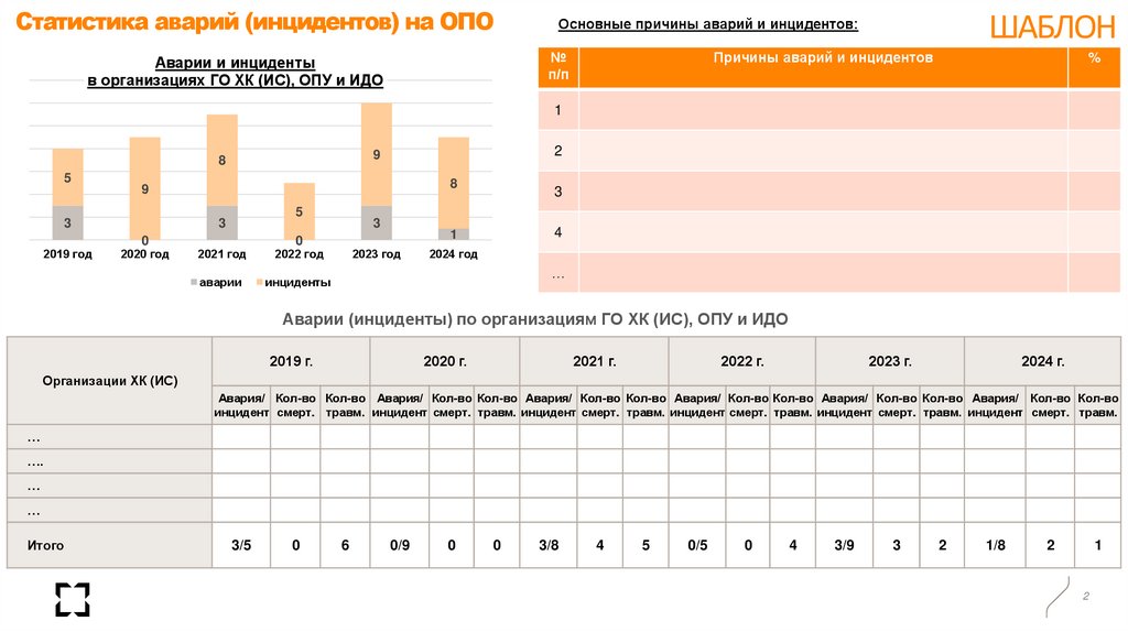 Аварии (инциденты) по организациям ГО ХК (ИС), ОПУ и ИДО
