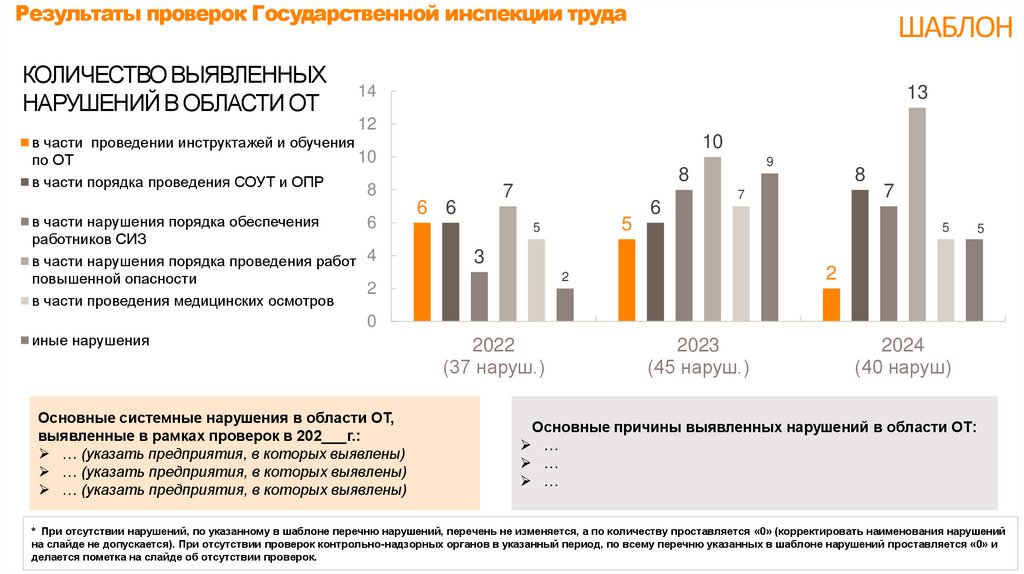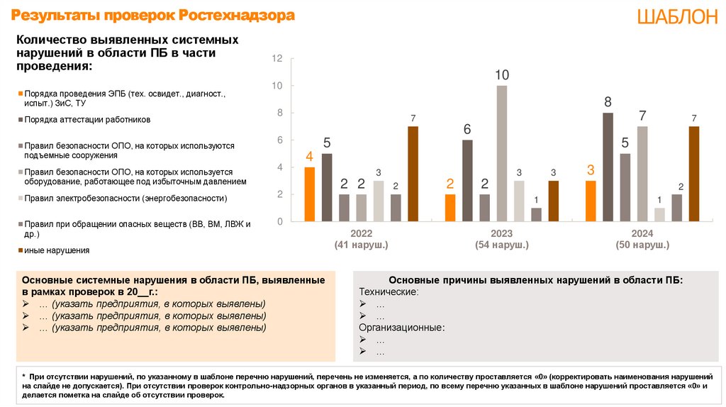 * При отсутствии нарушений, по указанному в шаблоне перечню нарушений, перечень не изменяется, а по количеству проставляется «0» (корректировать наименования нарушений