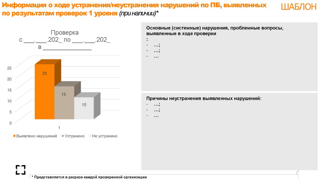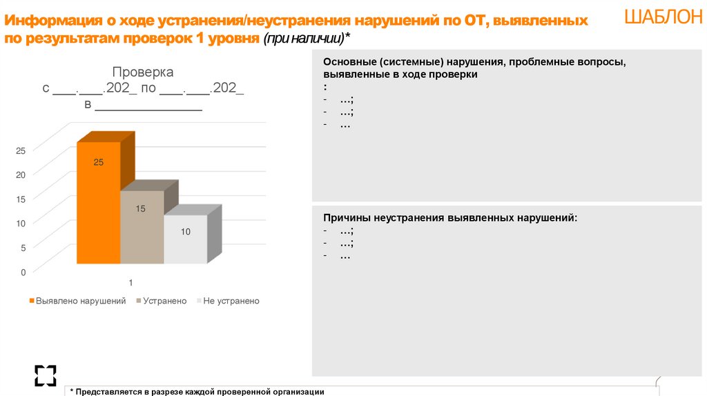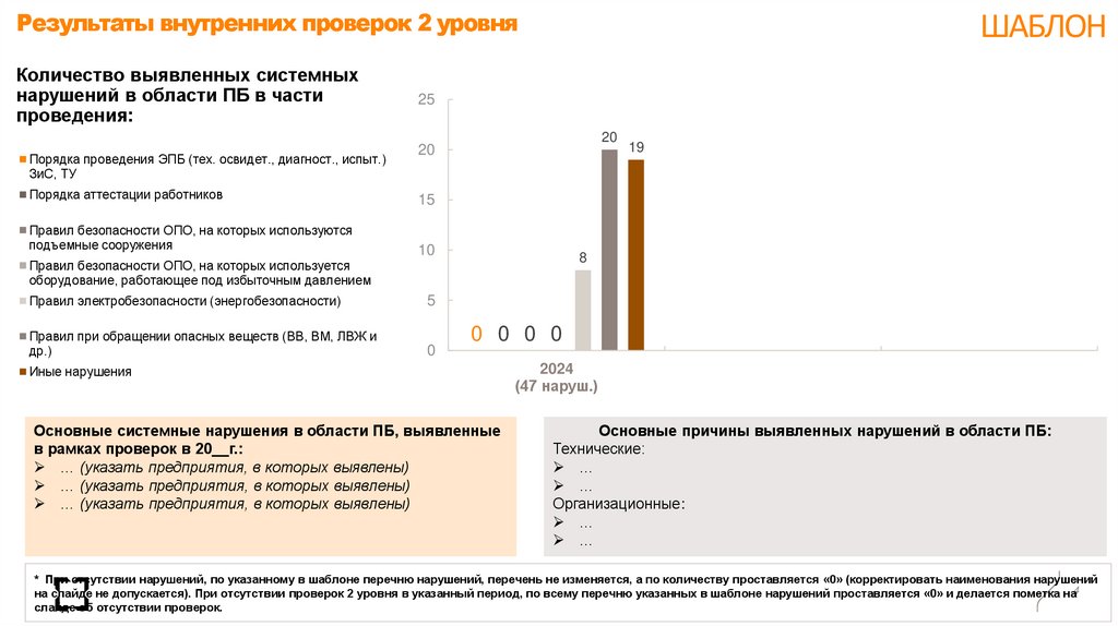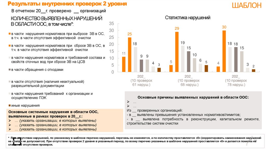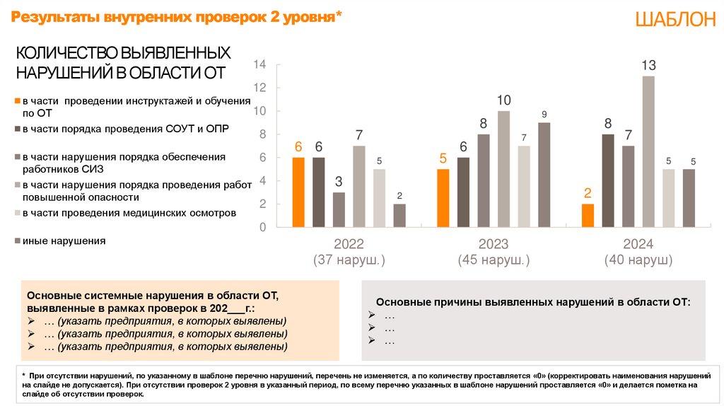 на слайде не допускается). При отсутствии проверок 2 уровня в указанный период, по всему перечню указанных в шаблоне нарушений проставляется «0» и делается пометка на