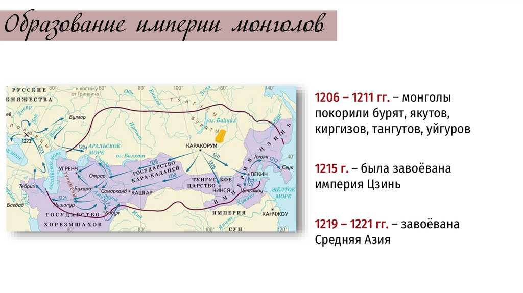 Образование империи монголов1206 – 1211 гг. – монголы
