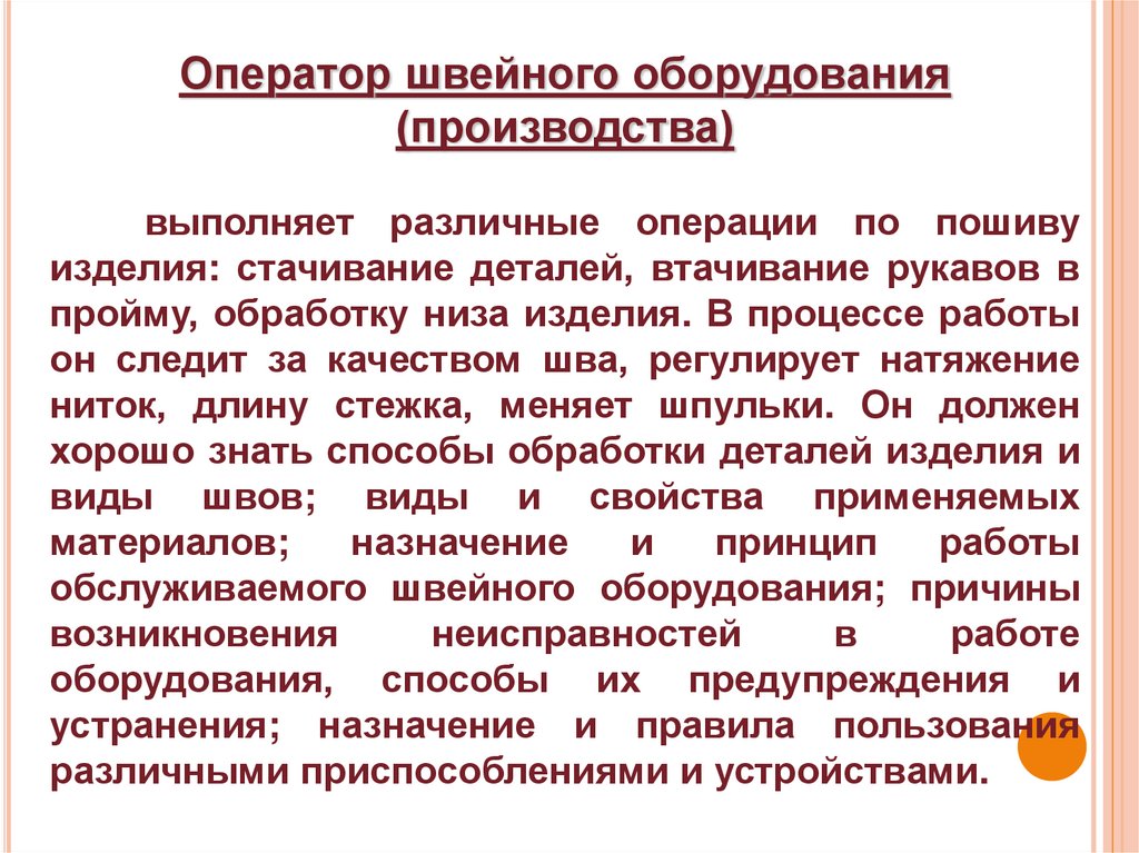 ОПЕРАТОР ШВЕЙНОГООБОРУДОВАНИЯ (ПРОИЗВОДСТВА)