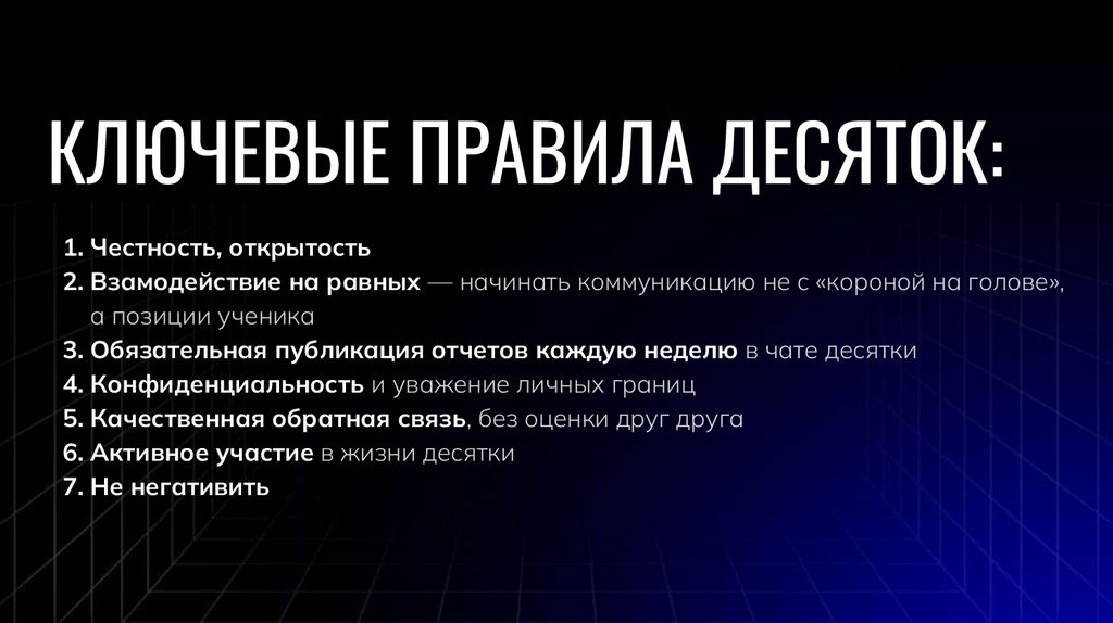 КЛЮЧЕВЫЕ ПРАВИЛА ДЕСЯТОК:1. Честность, открытость