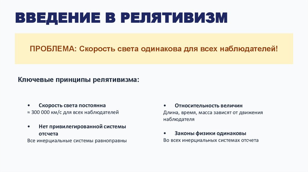 ВВЕДЕНИЕ В РЕЛЯТИВИЗМПРОБЛЕМА: Скорость света одинакова для всех наблюдателей!