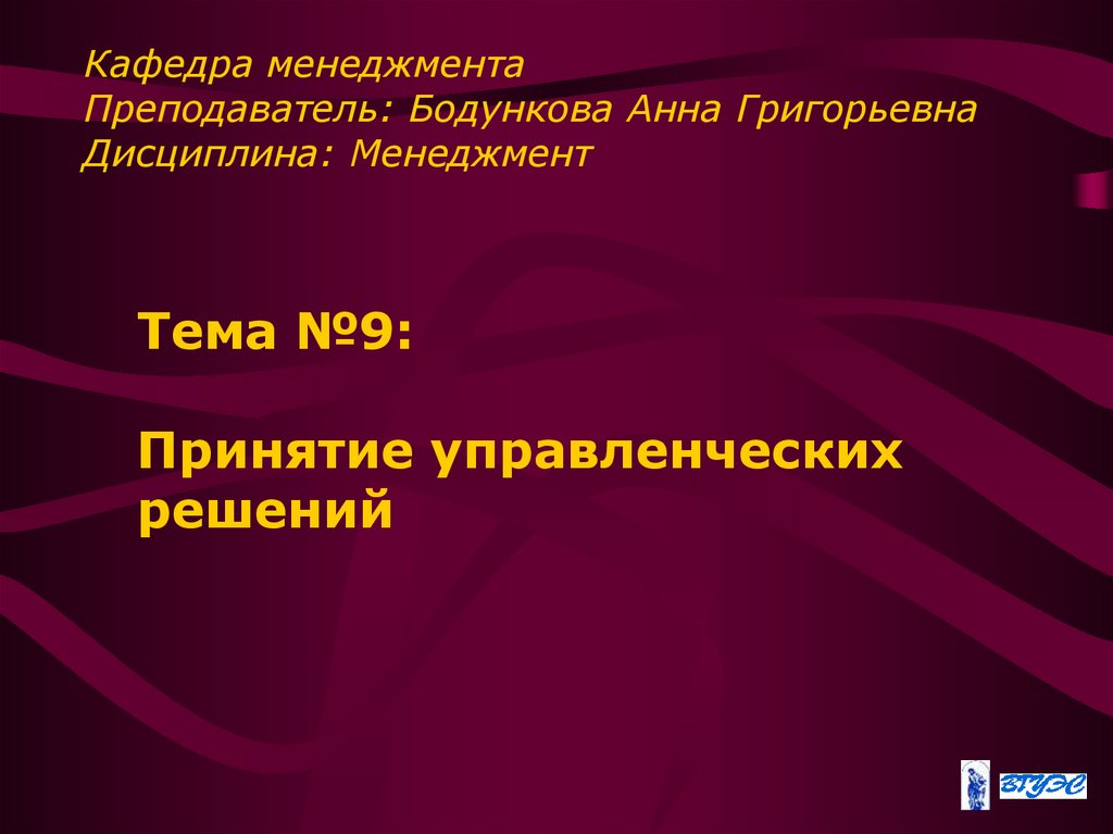 2013_2014_Менеджмент_Лекция_10_Тема_9_Принятие_управленческих_решений