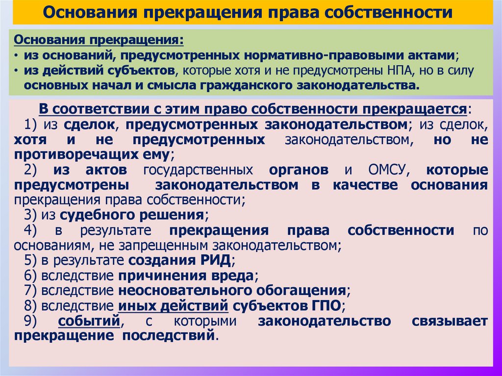 Основания прекращения права собственностиОснования прекращения: