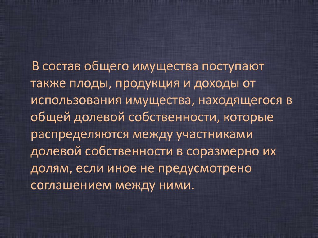 В состав общего имущества поступаюттакже плоды, продукция и доходы от