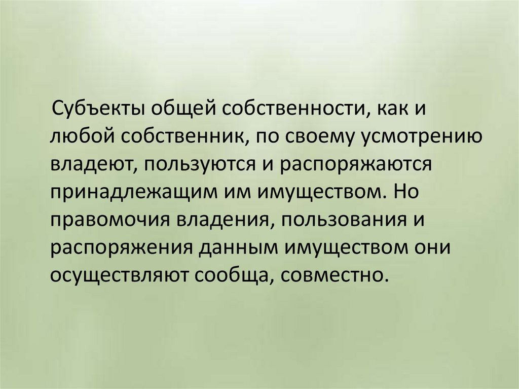 Субъекты общей собственности, как илюбой собственник, по своему усмотрению
