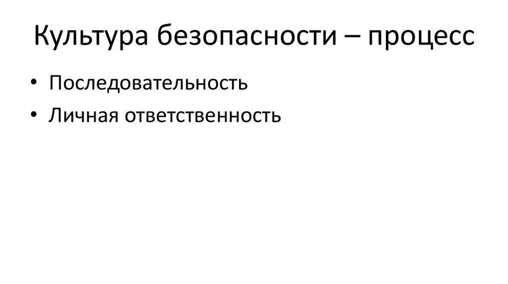 Культура безопасности – процесс• Последовательность