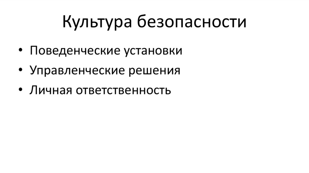 Культура безопасности• Поведенческие установки