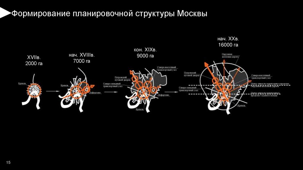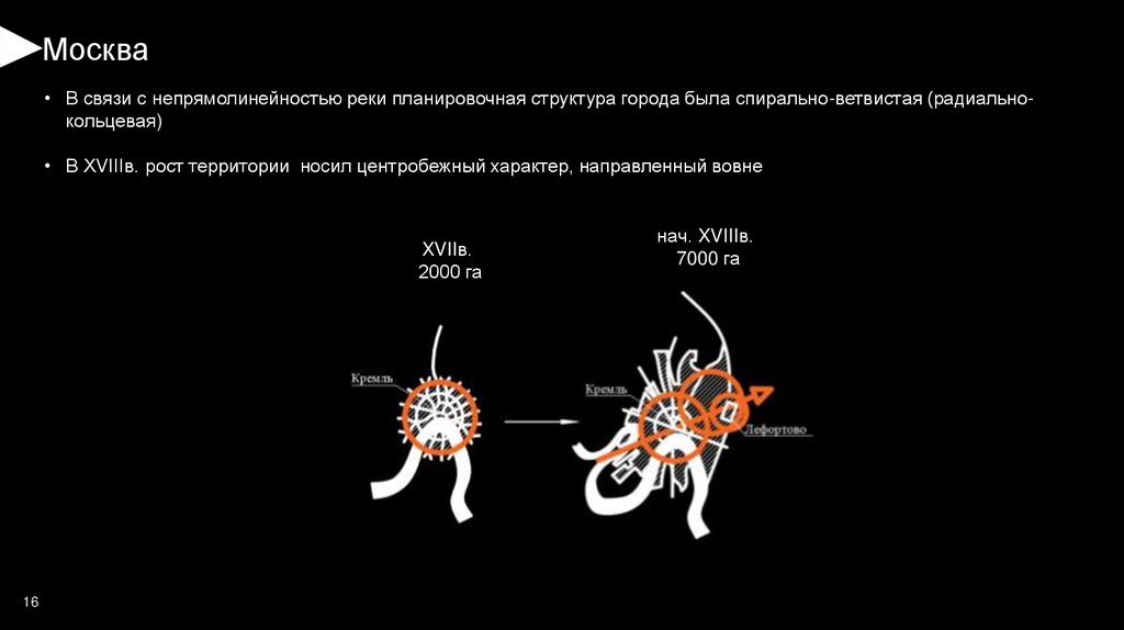 • В XVIIIв. рост территории носил центробежный характер, направленный вовне