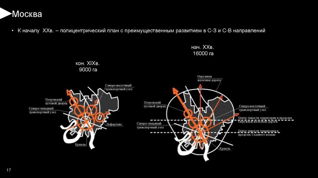 Москва• К началу XXв. – полицентрический план с преимущественным развитием в С-З и С-В направлений