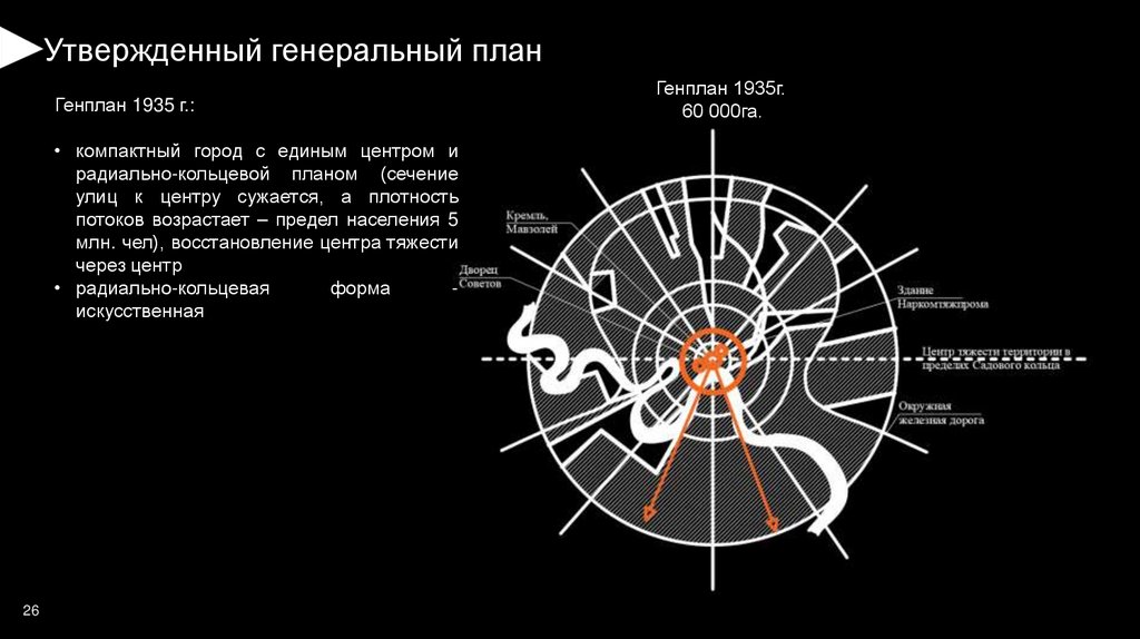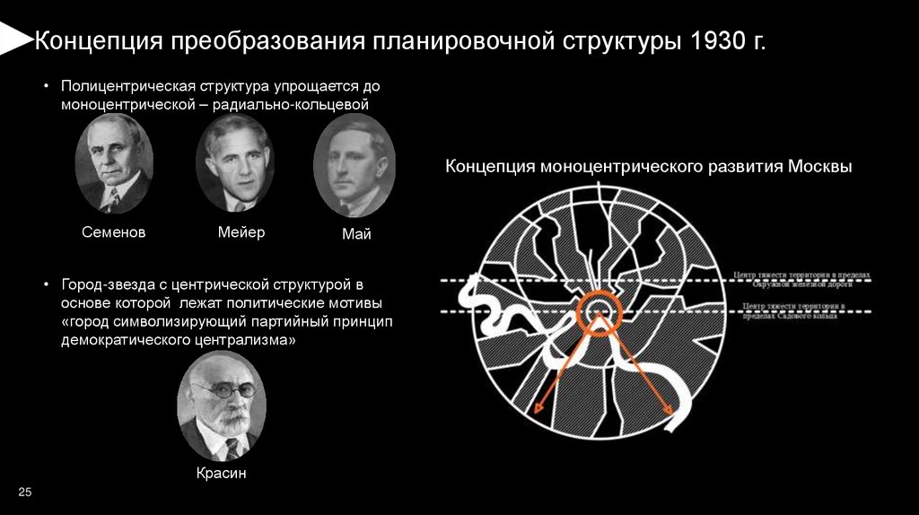 Концепция преобразования планировочной структуры 1930 г.• Полицентрическая структура упрощается до