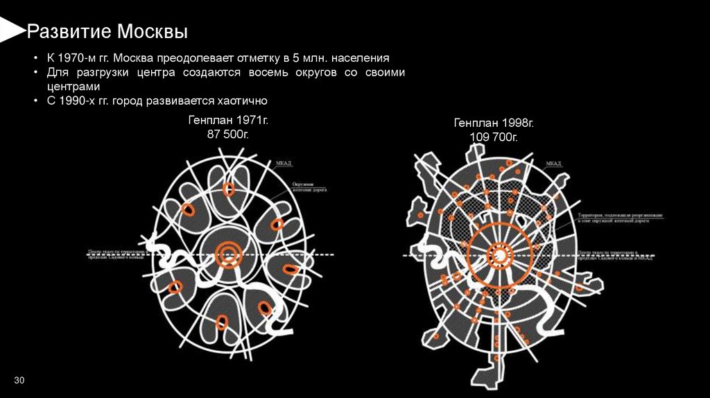 Развитие Москвы• К 1970-м гг. Москва преодолевает отметку в 5 млн. населения