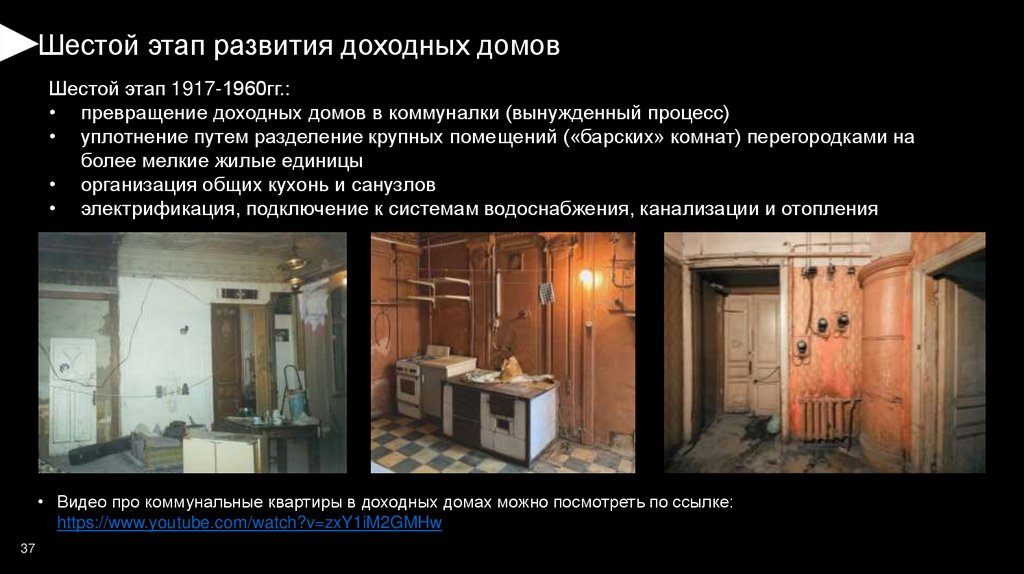 • превращение доходных домов в коммуналки (вынужденный процесс)