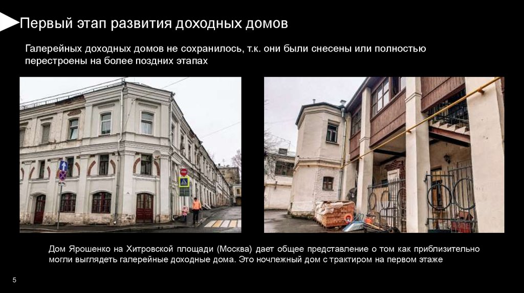 Первый этап развития доходных домовГалерейных доходных домов не сохранилось, т.к. они были снесены или полностью