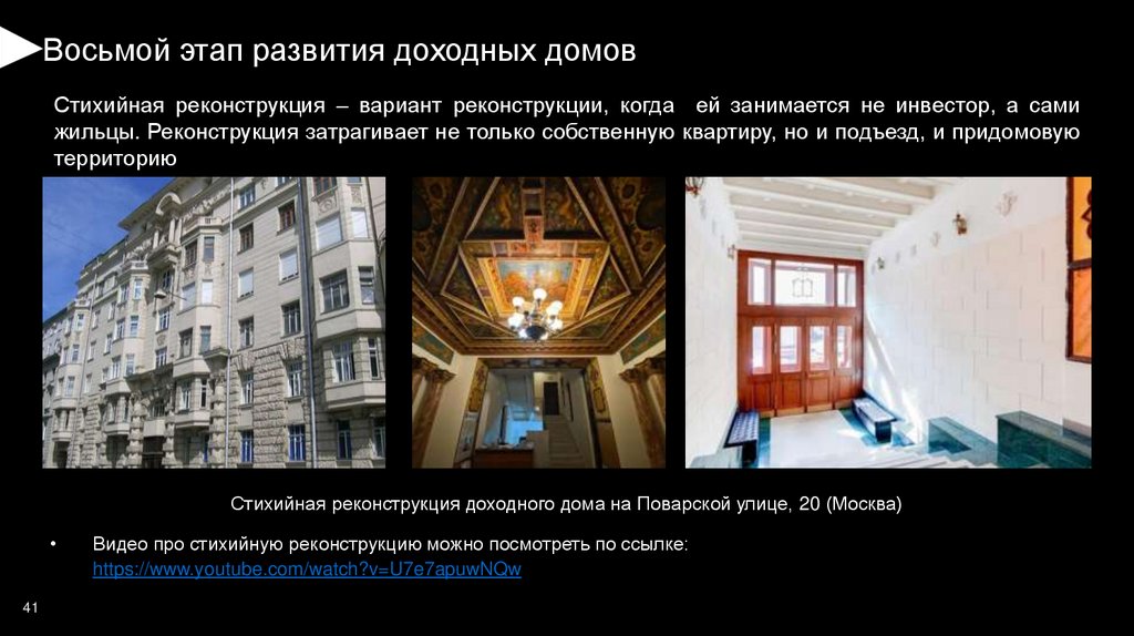 Восьмой этап развития доходных домовСтихийная реконструкция – вариант реконструкции, когда ей занимается не инвестор, а сами