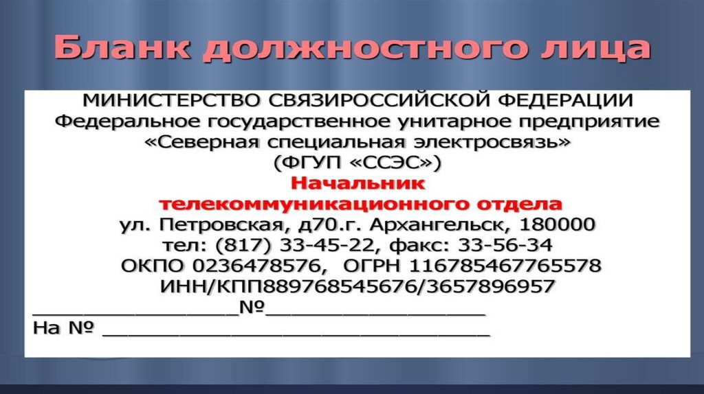 3. Какие данные должны присутствовать в бланке должностного лица?