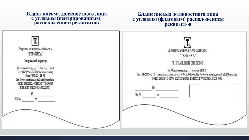 5. Изготовьте бланки должностного лица с угловым и продольным расположением реквизитов.