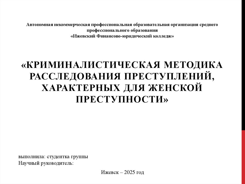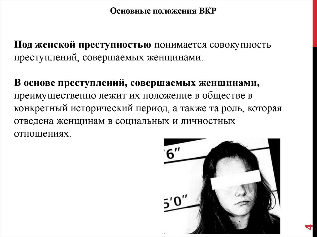 Основные положения ВКРПод женской преступностью понимается совокупность
