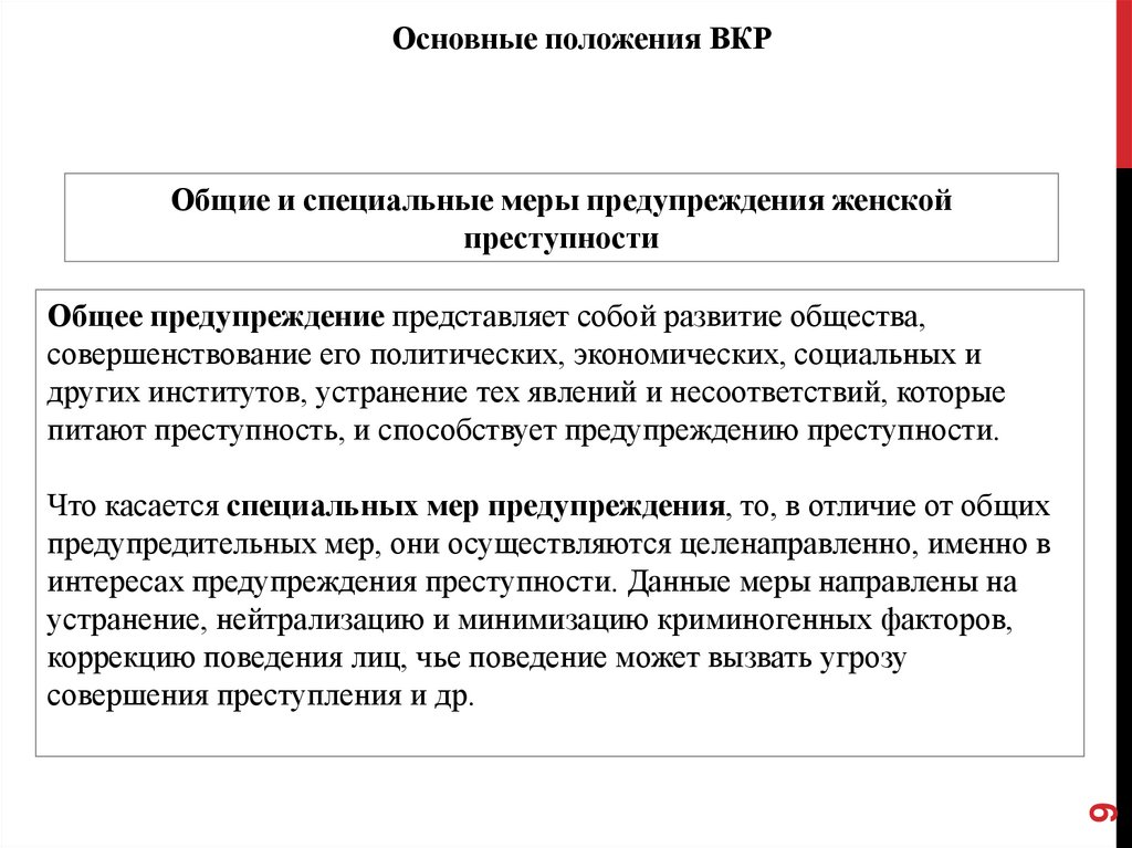 Основные положения ВКРОбщие и специальные меры предупреждения женской