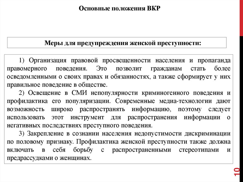 Основные положения ВКРМеры для предупреждения женской преступности: