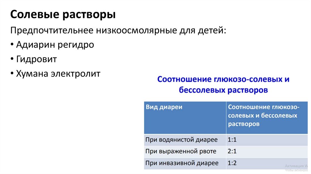 Солевые растворыПредпочтительнее низкоосмолярные для детей: