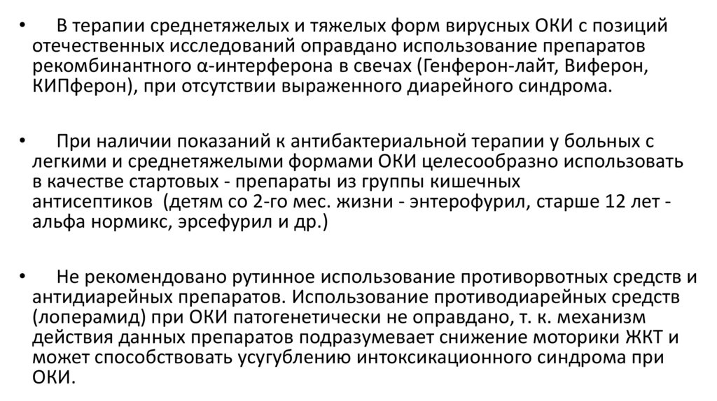 В терапии среднетяжелых и тяжелых форм вирусных ОКИ с позиций