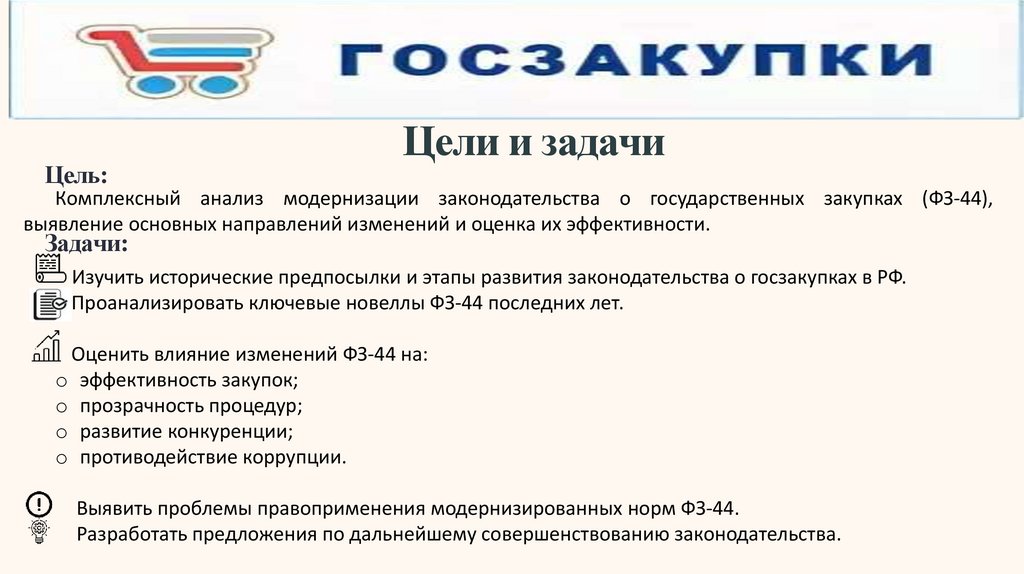 Актуальность выбранной темы исследования.Закон 44-ФЗ постоянно модернизируется, что обусловлено необходимостью: