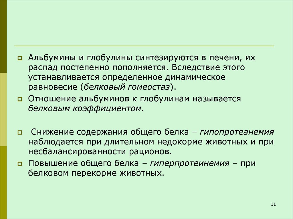 Альбумины и глобулины синтезируются в печени, ихраспад постепенно пополняется. Вследствие этого