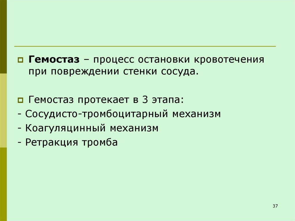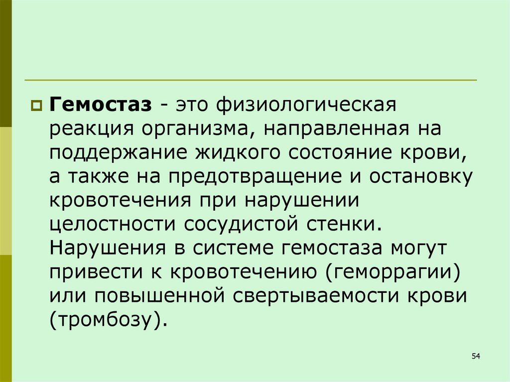 Гемостаз - это физиологическаяреакция организма, направленная на
