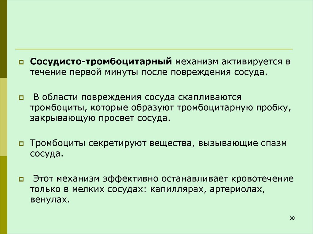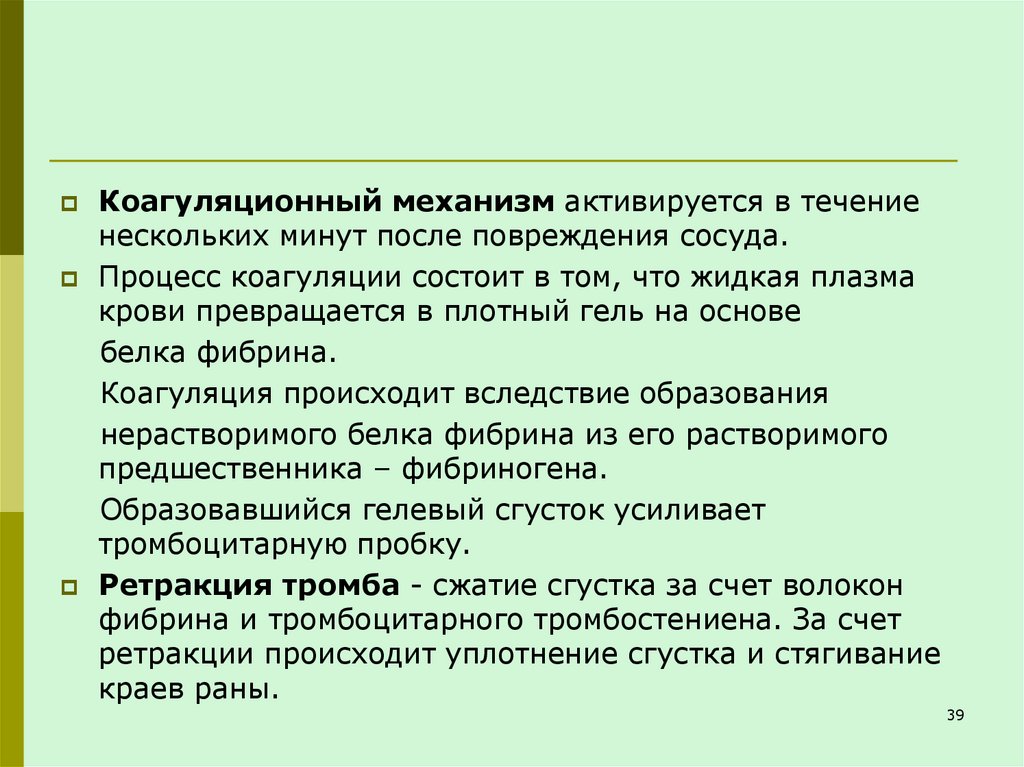 Коагуляционный механизм активируется в течениенескольких минут после повреждения сосуда.