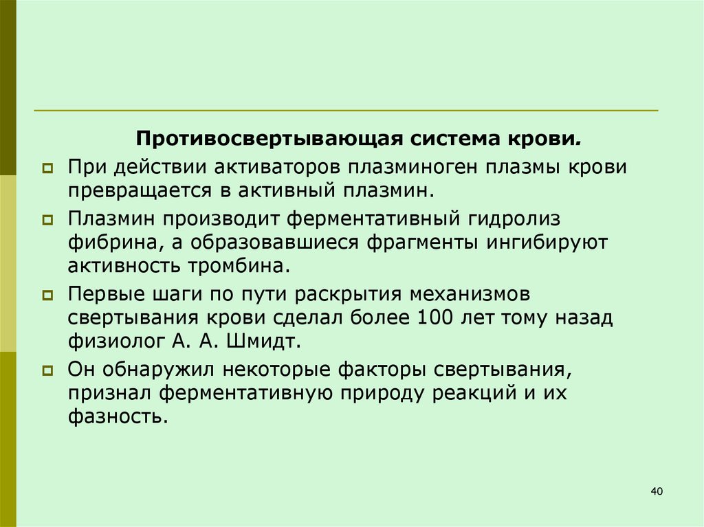 Противосвертывающая система крови.При действии активаторов плазминоген плазмы крови