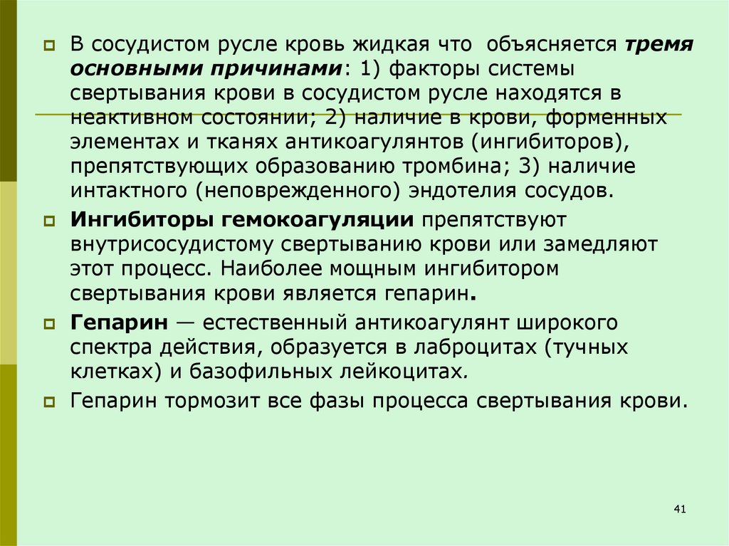 В сосудистом русле кровь жидкая что объясняется тремяосновными причинами: 1) факторы системы