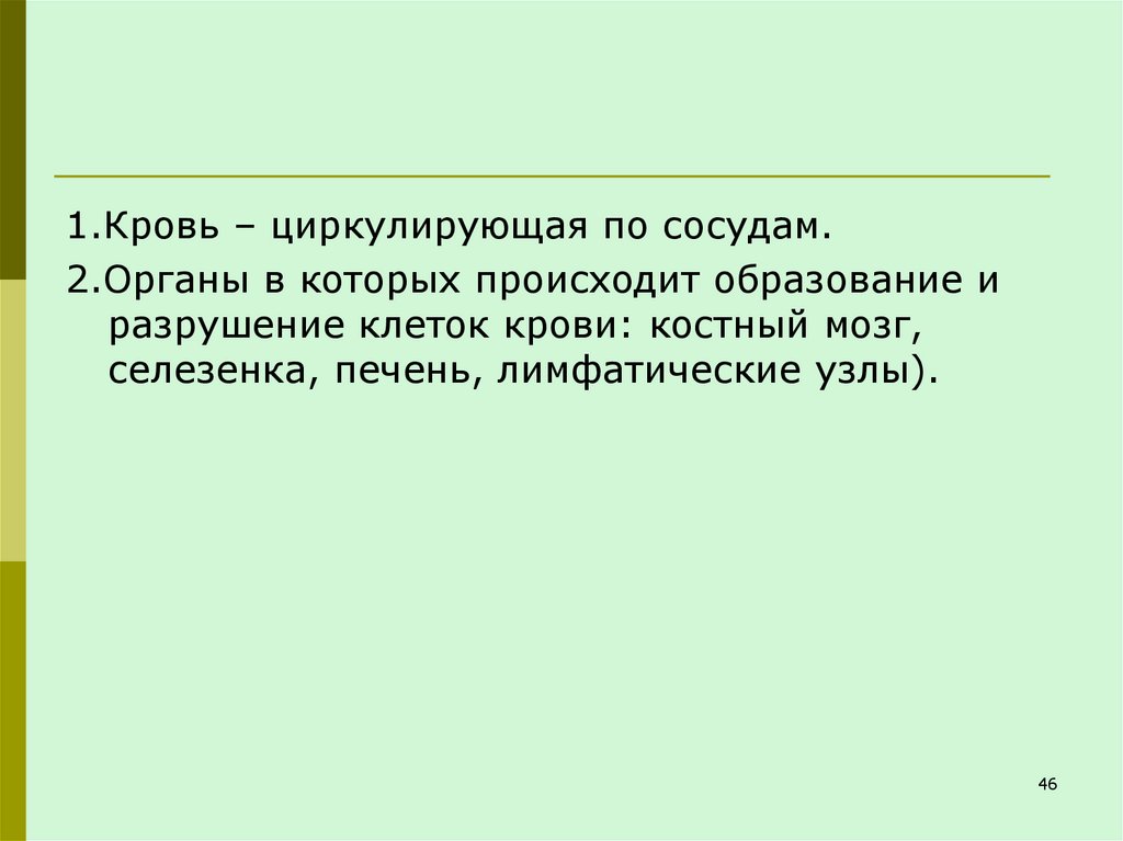 1.Кровь – циркулирующая по сосудам.2.Органы в которых происходит образование и