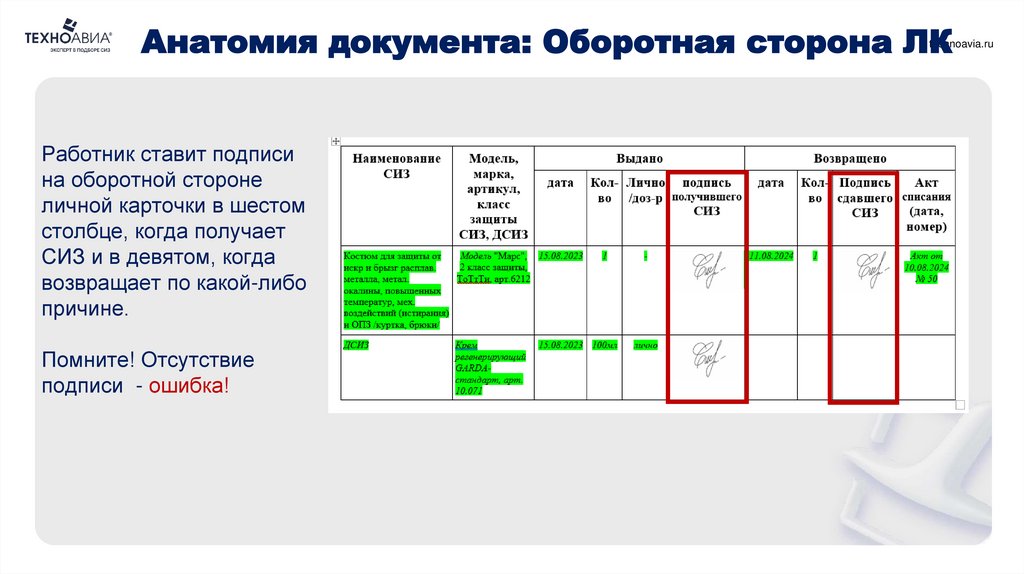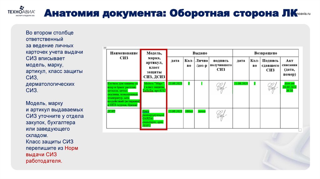 technoavia.ruЛичная карточка учета выдачи СИЗ