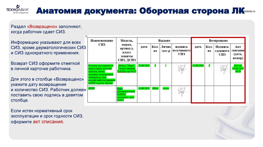 Возврат СИЗ оформите отметкой
