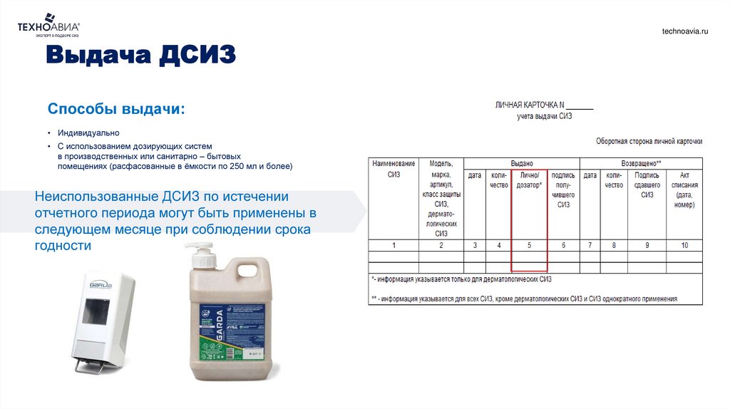 Карточка учета выдачи дежурных СИЗtechnoavia.ru