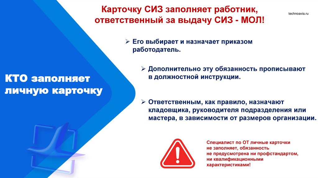 Карточку СИЗ заполняет работник,ответственный за выдачу СИЗ - МОЛ!
