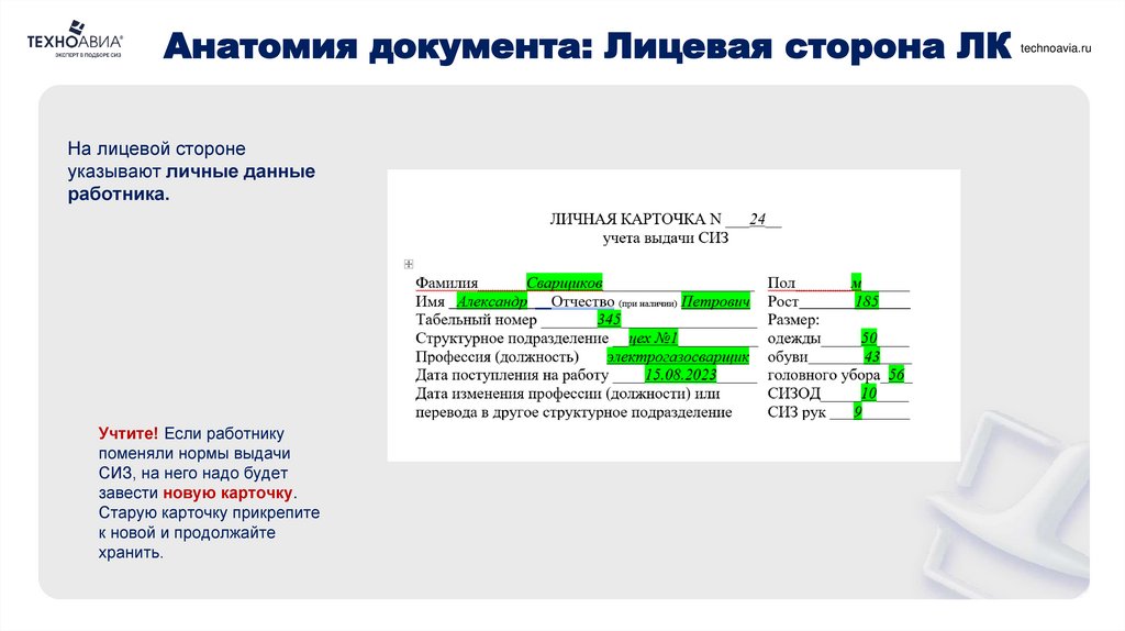 technoavia.ru«Личная карточка учёта СИЗ: