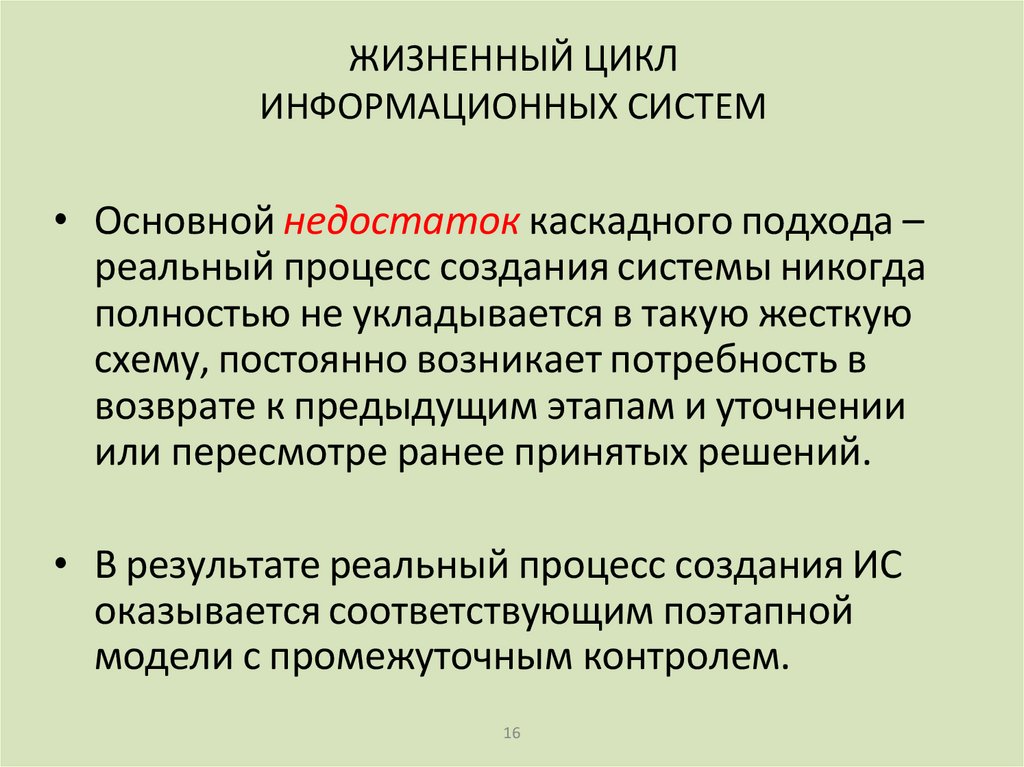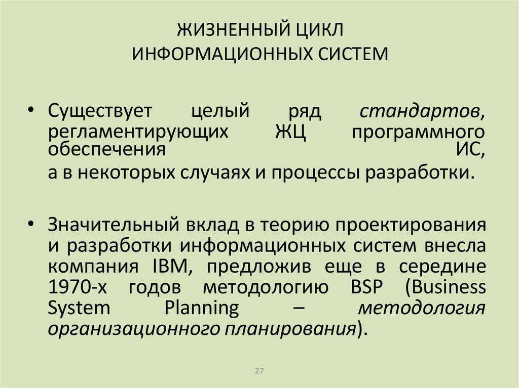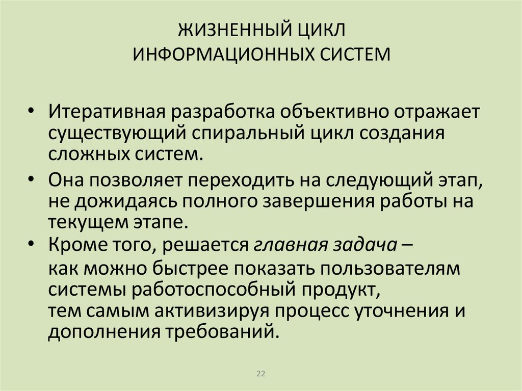 • Жизненный цикл ИС можно представить