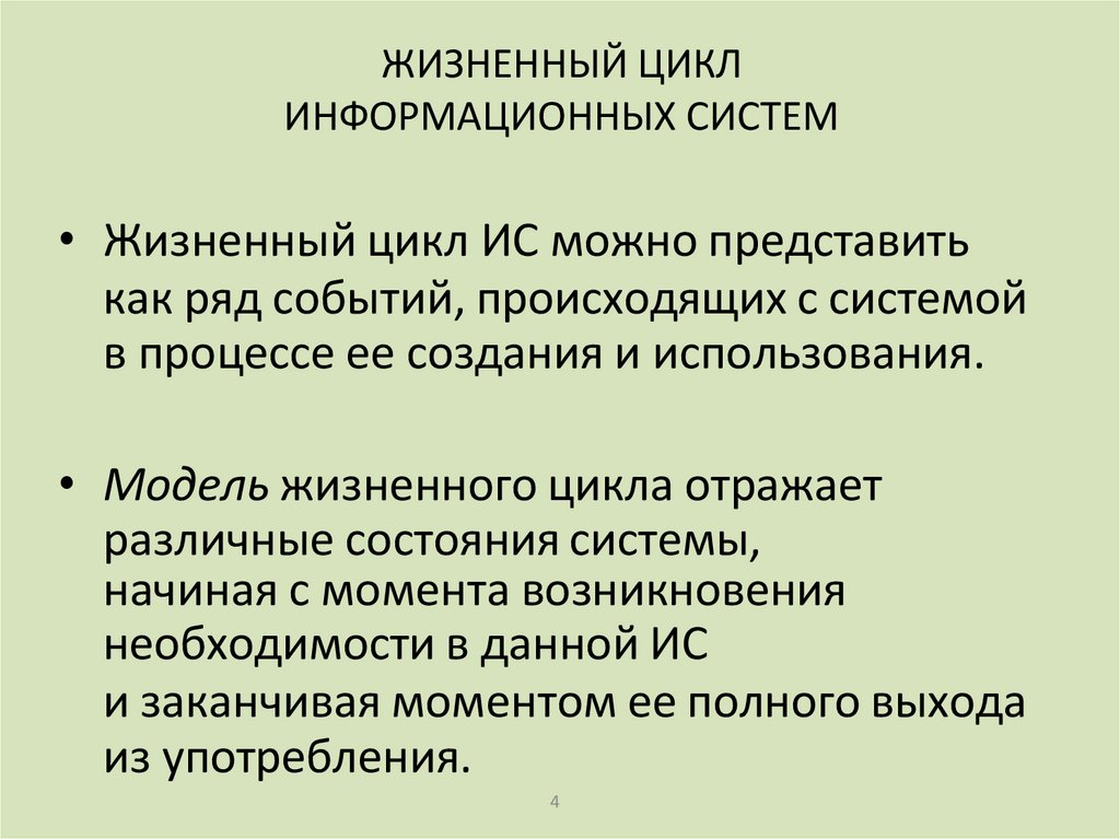• Жизненный цикл ИС – некоторая