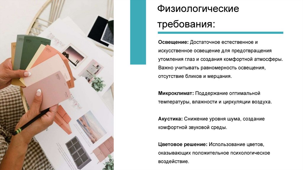 Эстетика: Интерьер должен быть визуально привлекательным и гармоничным.