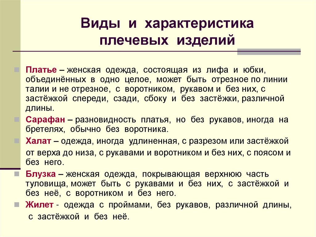 Виды и характеристикаплечевых изделий