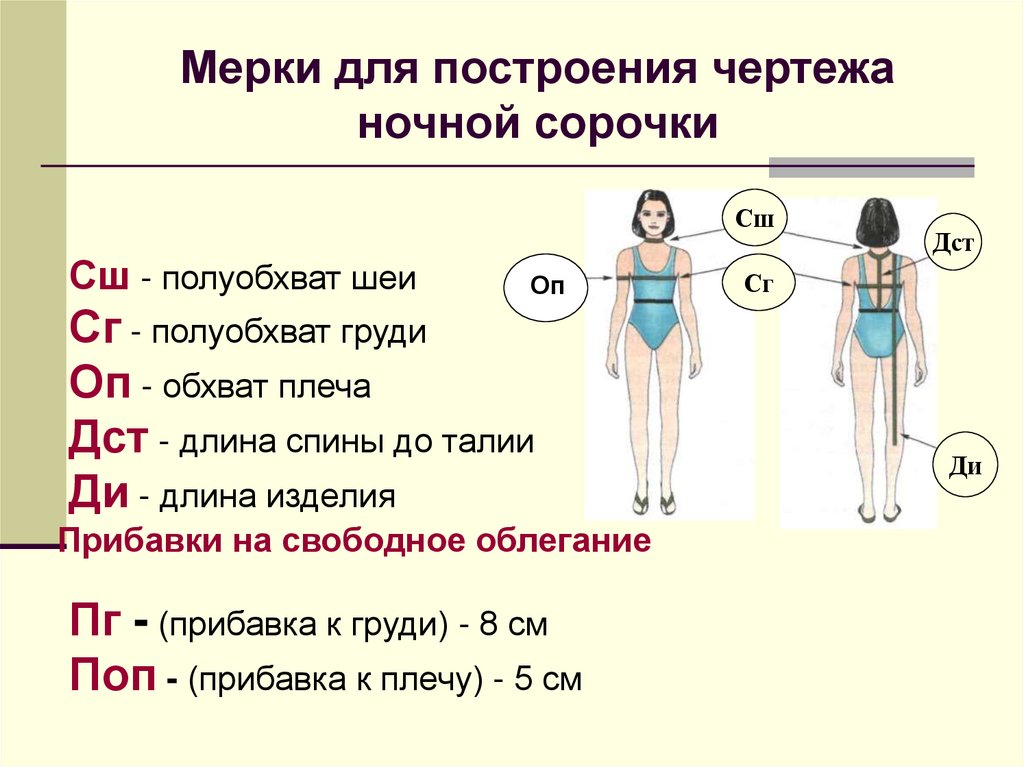 Мерки для построения чертежаночной сорочки