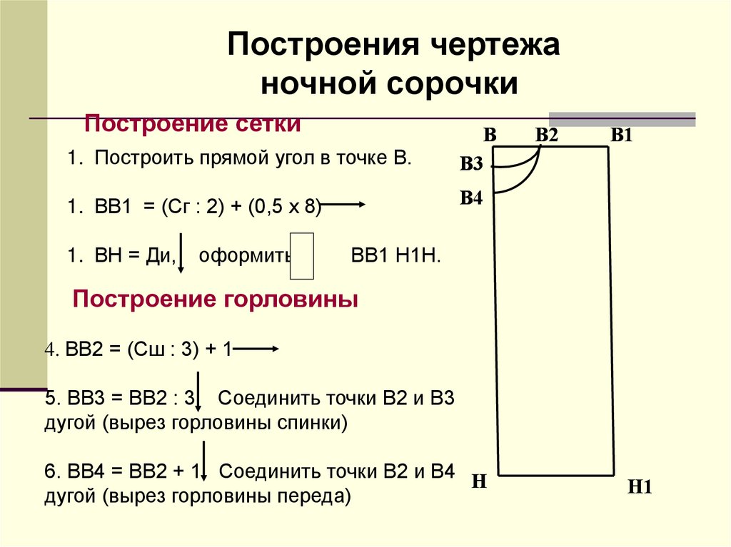 Построения чертежаночной сорочки