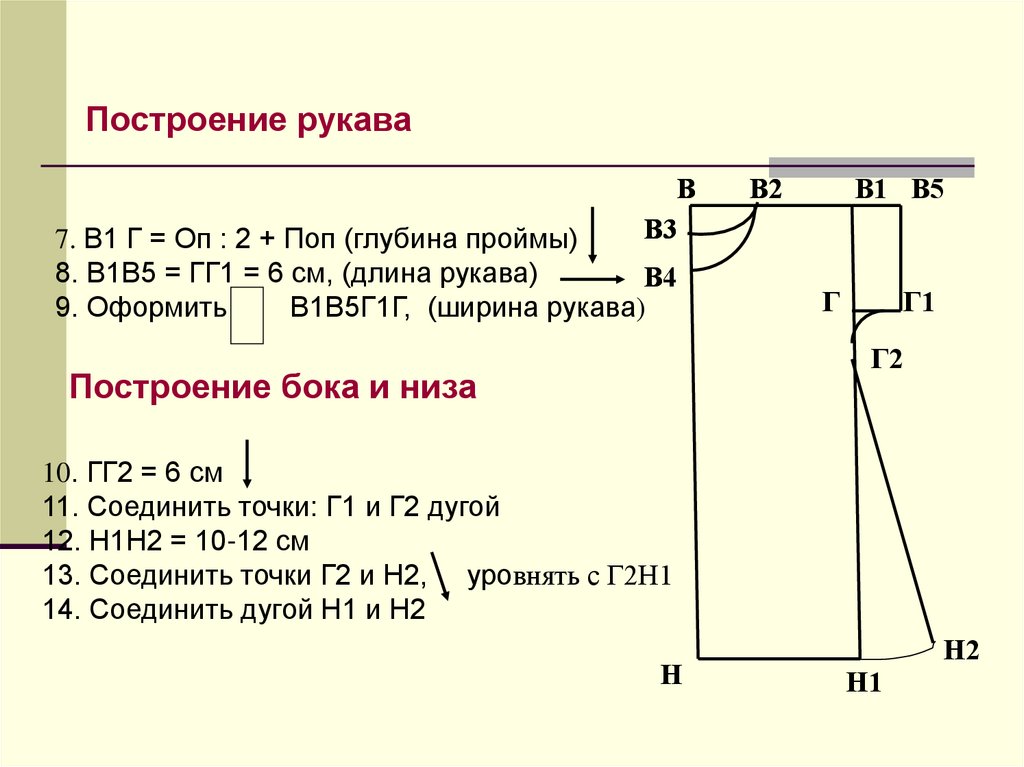 8. В1В5 = ГГ1 = 6 см, (длина рукава)
