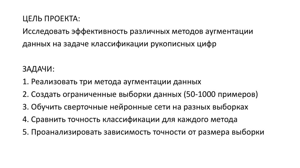 ЦЕЛЬ ПРОЕКТА:Исследовать эффективность различных методов аугментации