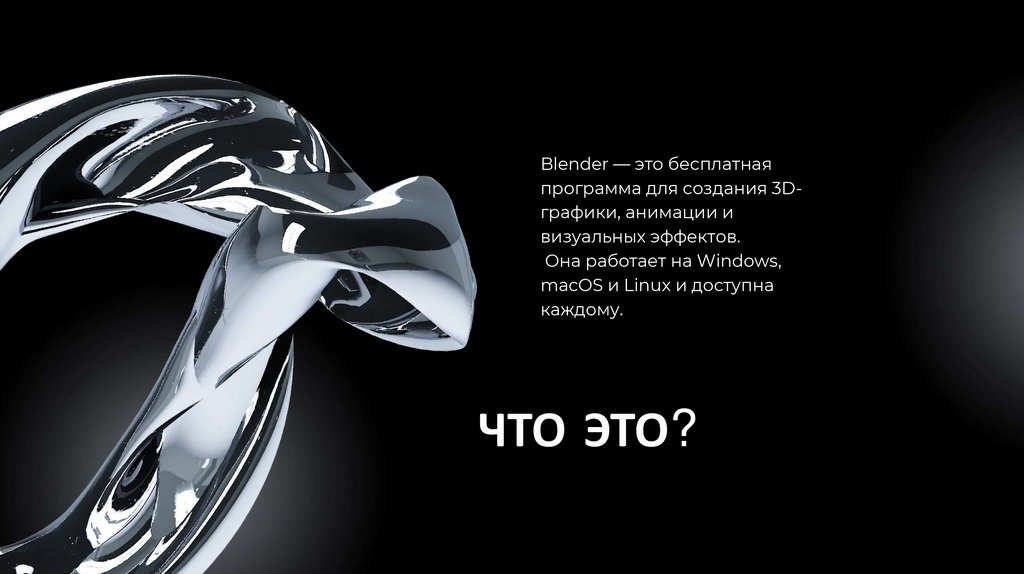Blender — это бесплатнаяпрограмма для создания 3Dграфики, анимации и