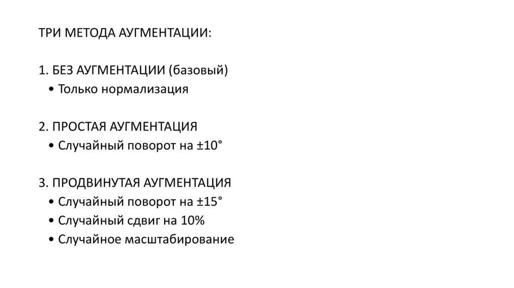 ТРИ МЕТОДА АУГМЕНТАЦИИ:1. БЕЗ АУГМЕНТАЦИИ (базовый)